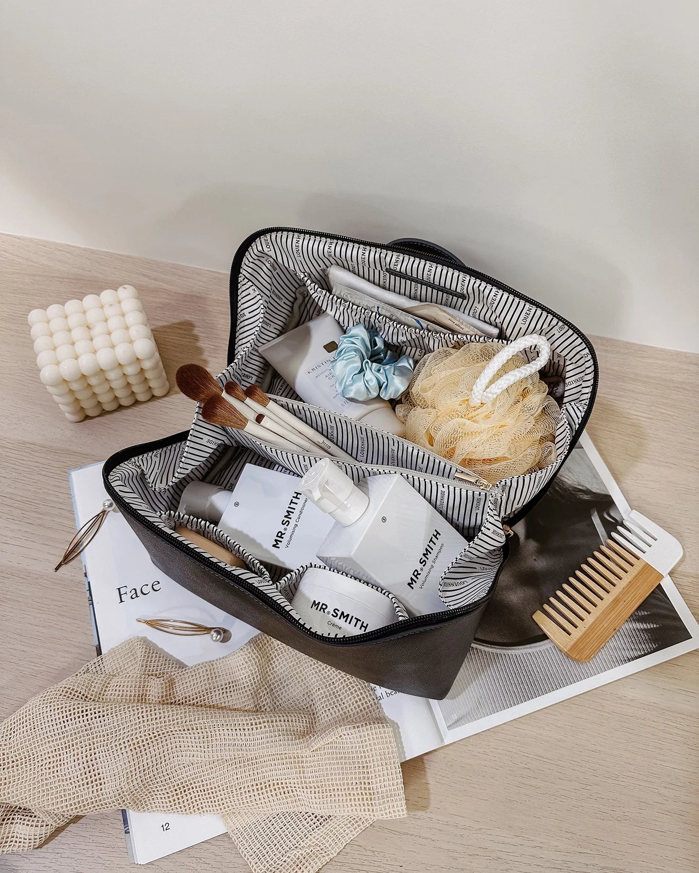 Inside, the Orion boasts two main compartments, a zip pocket, and three slip pockets, ensuring that every item—from skincare products to makeup brushes—has its designated space. Whether you’re a jetsetter or someone who enjoys a neatly arranged vanity, this cosmetic case combines functionality with a refined finish, making it a trusted companion for every getaway.