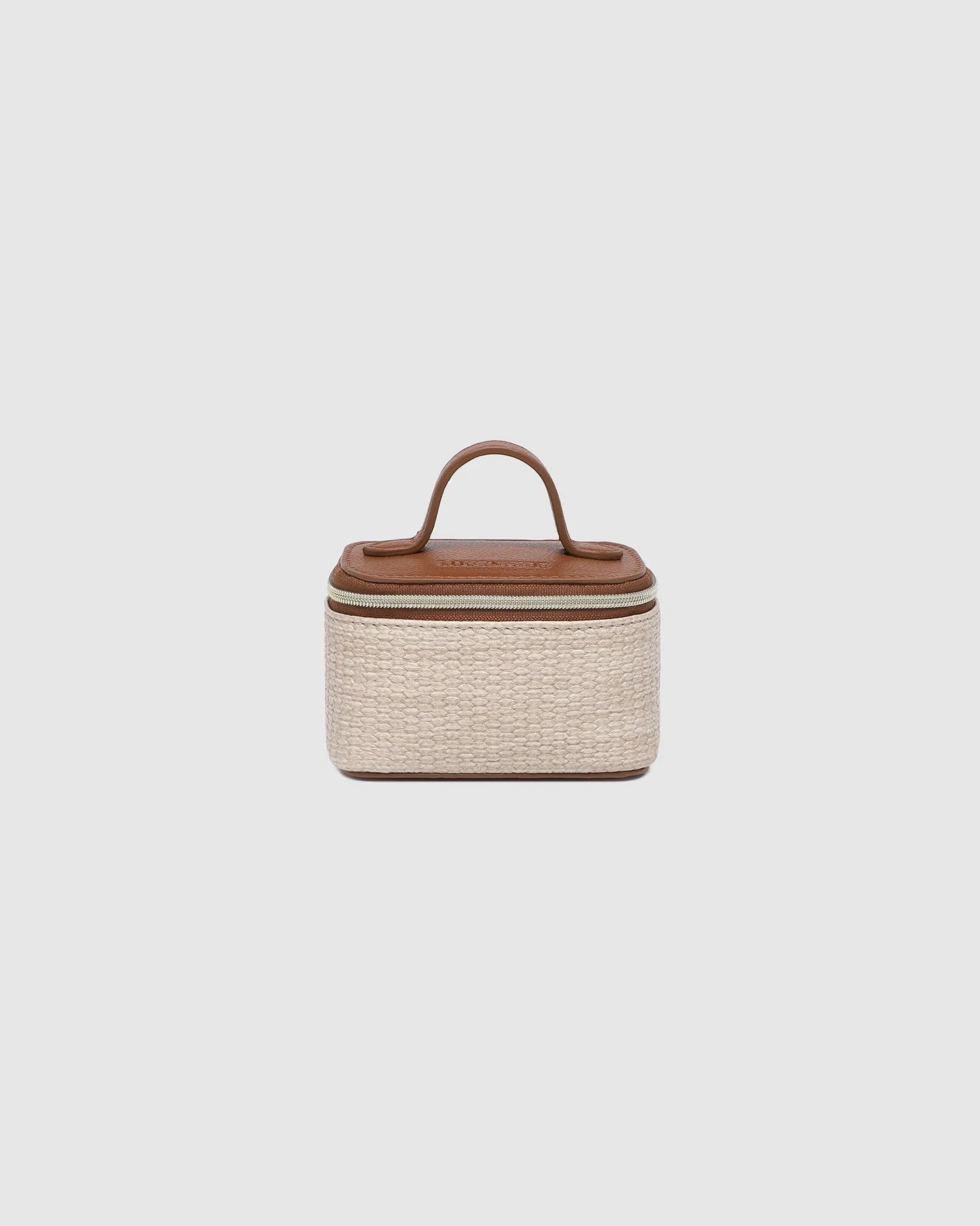Featuring a secure zip closure, the Trudy jewellery box ensures that your jewellery stays protected while you travel. The textured raffia and contrasting faux leather exterior add a touch of understated luxury, enhancing your travel style with sophistication.