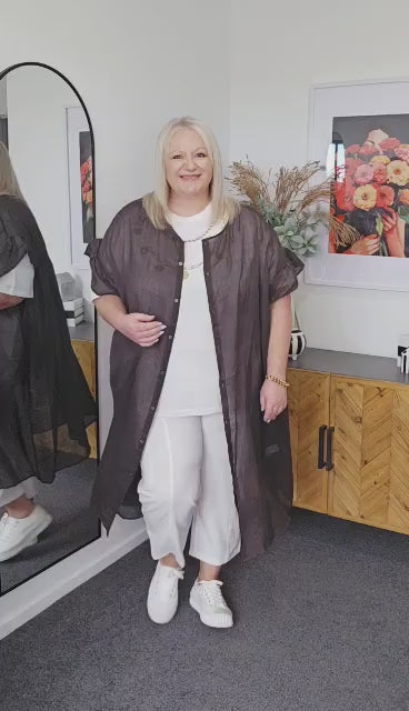 Style this dress over pants, wear it as a duster with jeans or dress pants, this is a very versatile piece sure to be a main feature in your daily look.