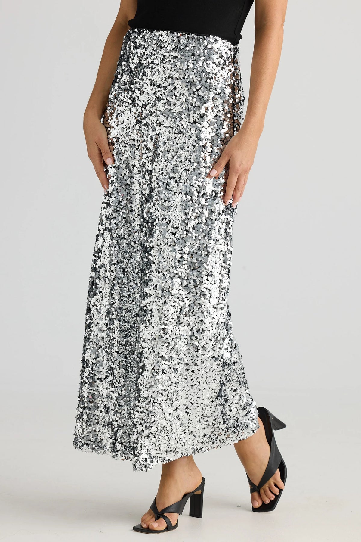 Go on, knock em' out in this incredible Paris Sequin Skirt! This stretch sequin skirt is a showstopper and sure to make an impression new in from Brave & True.