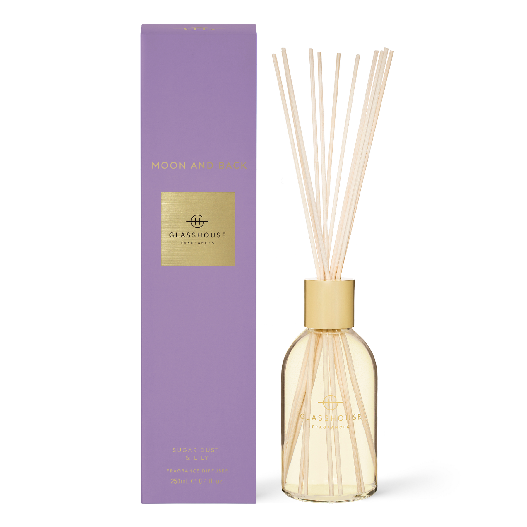 Create a welcoming atmosphere with the Glasshouse Moon & Back diffuser, and let its beautiful fragrance transport you to the stars!