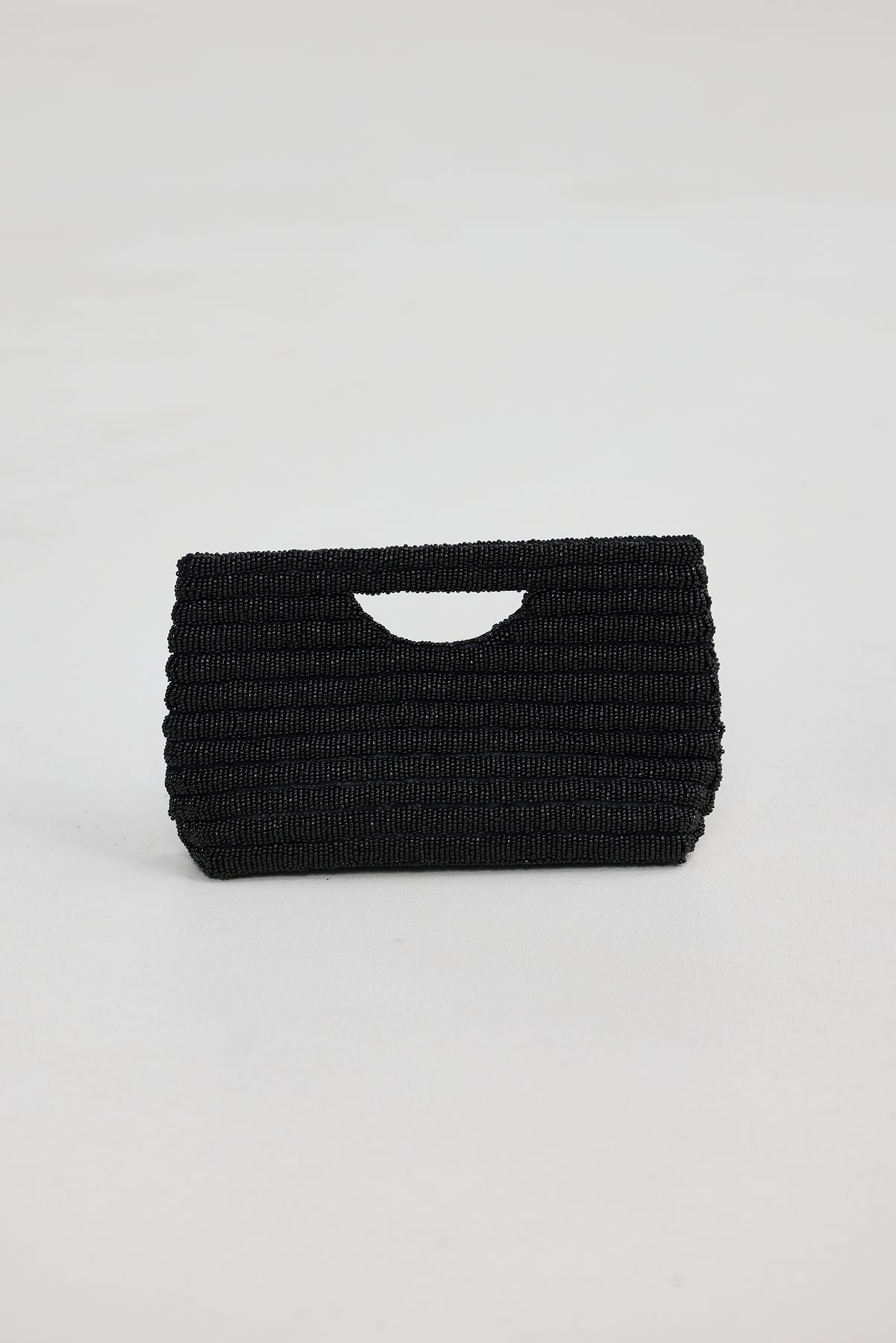 Introducing the Black Hand-Beaded Warhol Clutch Bag, a stunning accessory that combines intricate craftsmanship with modern design. This structured clutch features a beautiful hand-beaded exterior and a unique cut-out handle, making it a standout piece for your collection.