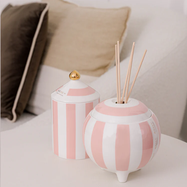 A hand-poured, custom-designed ceramic diffuser that continuously fills your room with the light floral scent of Raspberry, Honey & Musk. Featuring bold stripes and luxe foiling, these ceramics are designed to be re-used long after the diffuser is finished.
