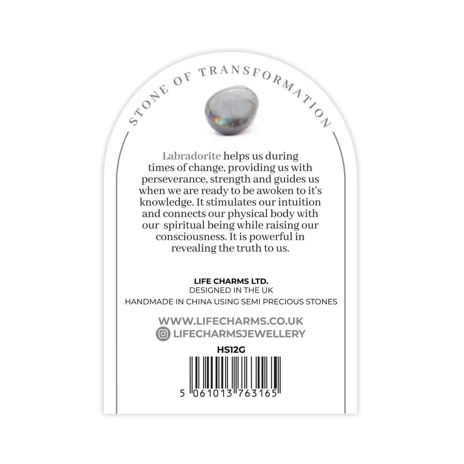 - Materials: 5mm labradorite beads with gold or silver plated charms, designed to inspire calm, intuition, and clarity