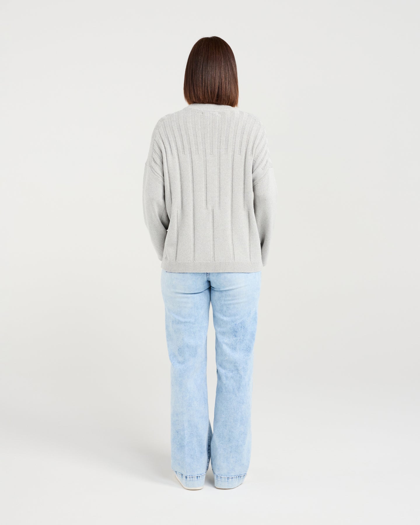 A refined wardrobe essential, the Kyla Knit pairs a classic silhouette with subtle stitched texture for understated interest. Soft grey tones and thoughtful stitch variation give this piece a wearable, elevated twist.