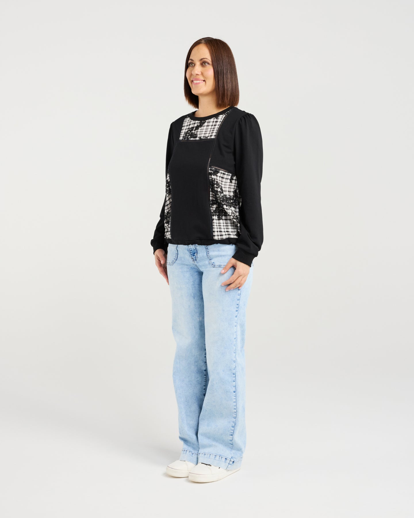 - Tuck the front into tailored trousers or a midi skirt for a polished silhouette
